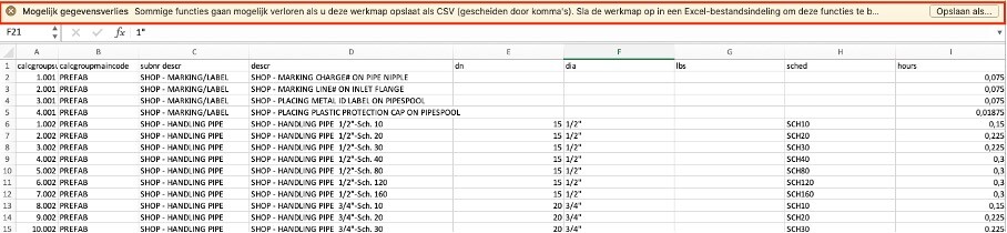 Als het goed is wordt data van CSV bestand nu in Excel leesbaar weergegeven in rijen en kolommen.
