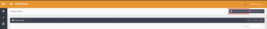 Wanneer een project is voltooid, kan het worden gearchiveerd. Deze optie bevindt zich in het menu "Bewerken" van een project. Plaats een vinkje bij de optie "Archived" om het overzicht van lopende projecten te behouden. Gearchiveerde projecten kunnen worden geopend via het menu "Show archived sites".