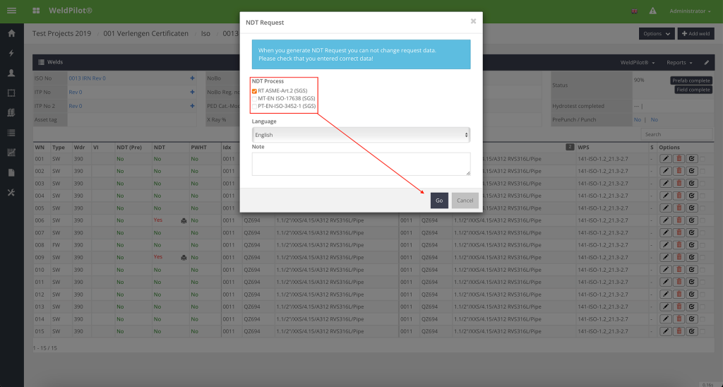 Een belangrijke nieuwe functie stelt gebruikers in staat om meerdere NDO (Non-Destructive Testing) aan te vragen voor een of meerdere lassen. Deze update is gebaseerd op feedback van klanten die vaak meerdere NDO-onderzoeken op dezelfde las moeten uitvoeren, soms door verschillende bedrijven of in verschillende fasen. Hierdoor is de behoefte ontstaan om meerdere verzoeken voor dezelfde las te genereren.