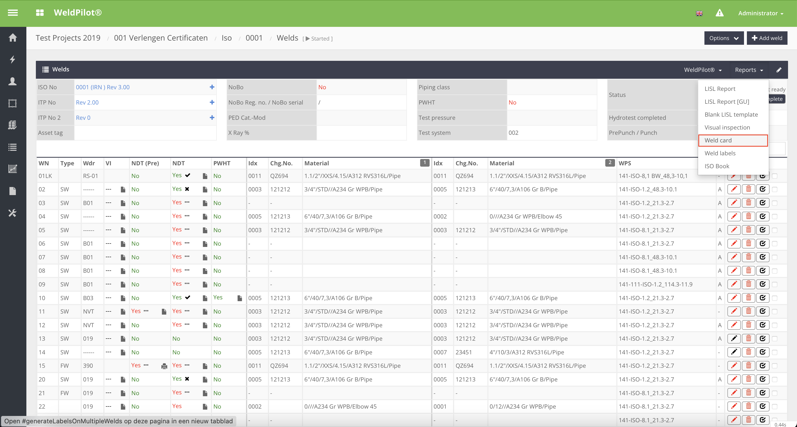 Dit is een handige manier om meerdere lassen tegelijkertijd te bewerken en informatie bij te werken in onze applicatie.