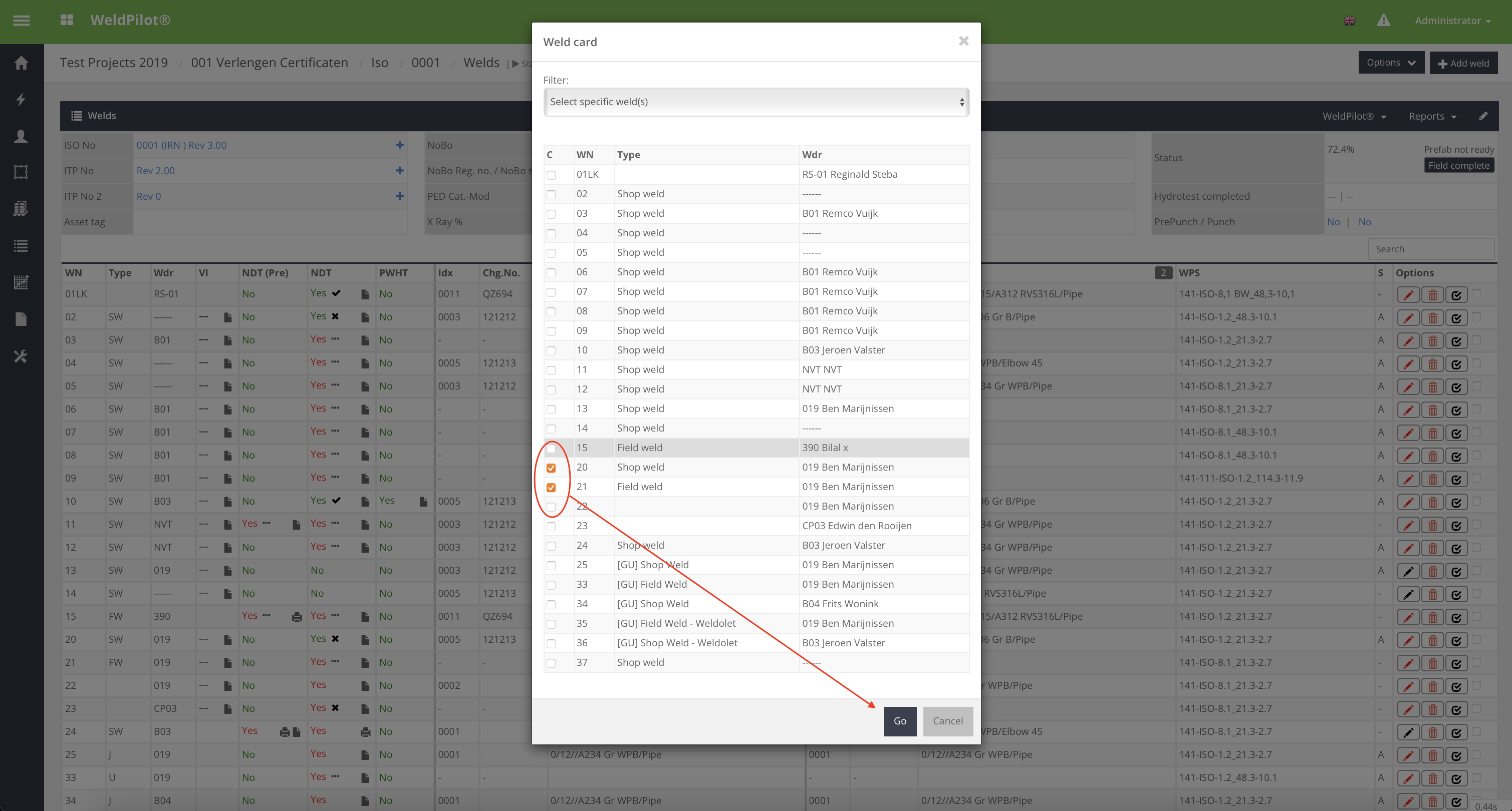 5. Klik op "GO": Klik op "GO" om de Weld Cards te genereren.