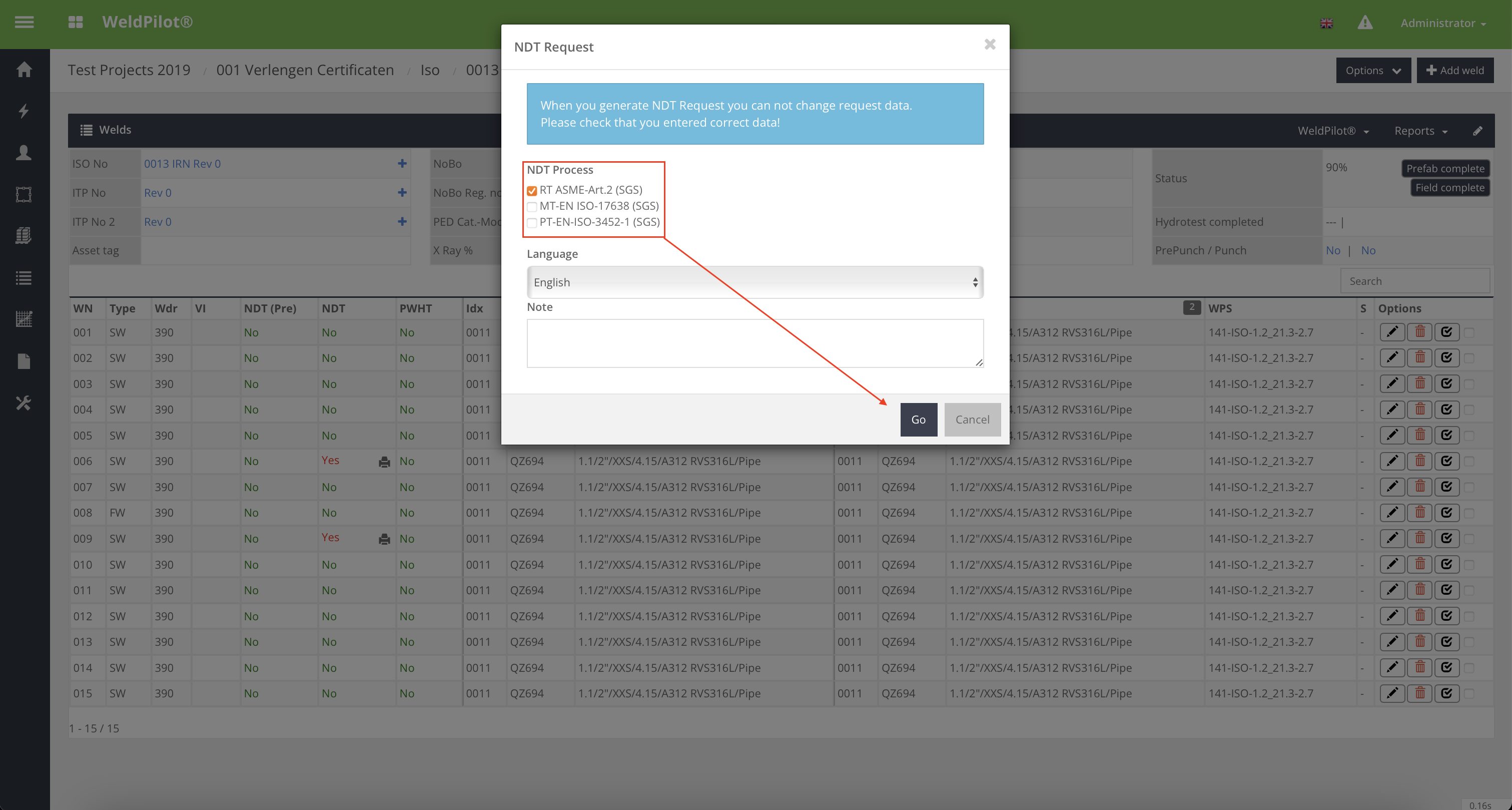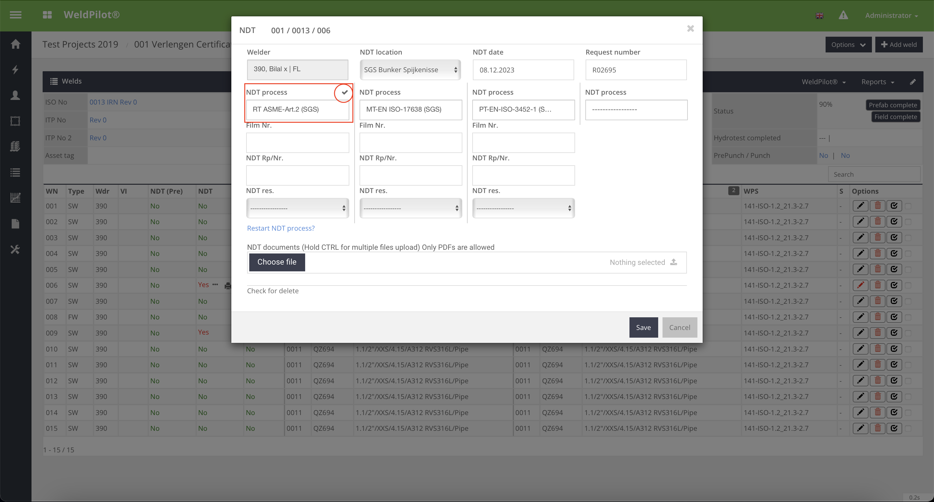 Een belangrijke nieuwe functie stelt gebruikers in staat om meerdere NDO (Non-Destructive Testing) aan te vragen voor een of meerdere lassen. Deze update is gebaseerd op feedback van klanten die vaak meerdere NDO-onderzoeken op dezelfde las moeten uitvoeren, soms door verschillende bedrijven of in verschillende fasen. Hierdoor is de behoefte ontstaan om meerdere verzoeken voor dezelfde las te genereren.