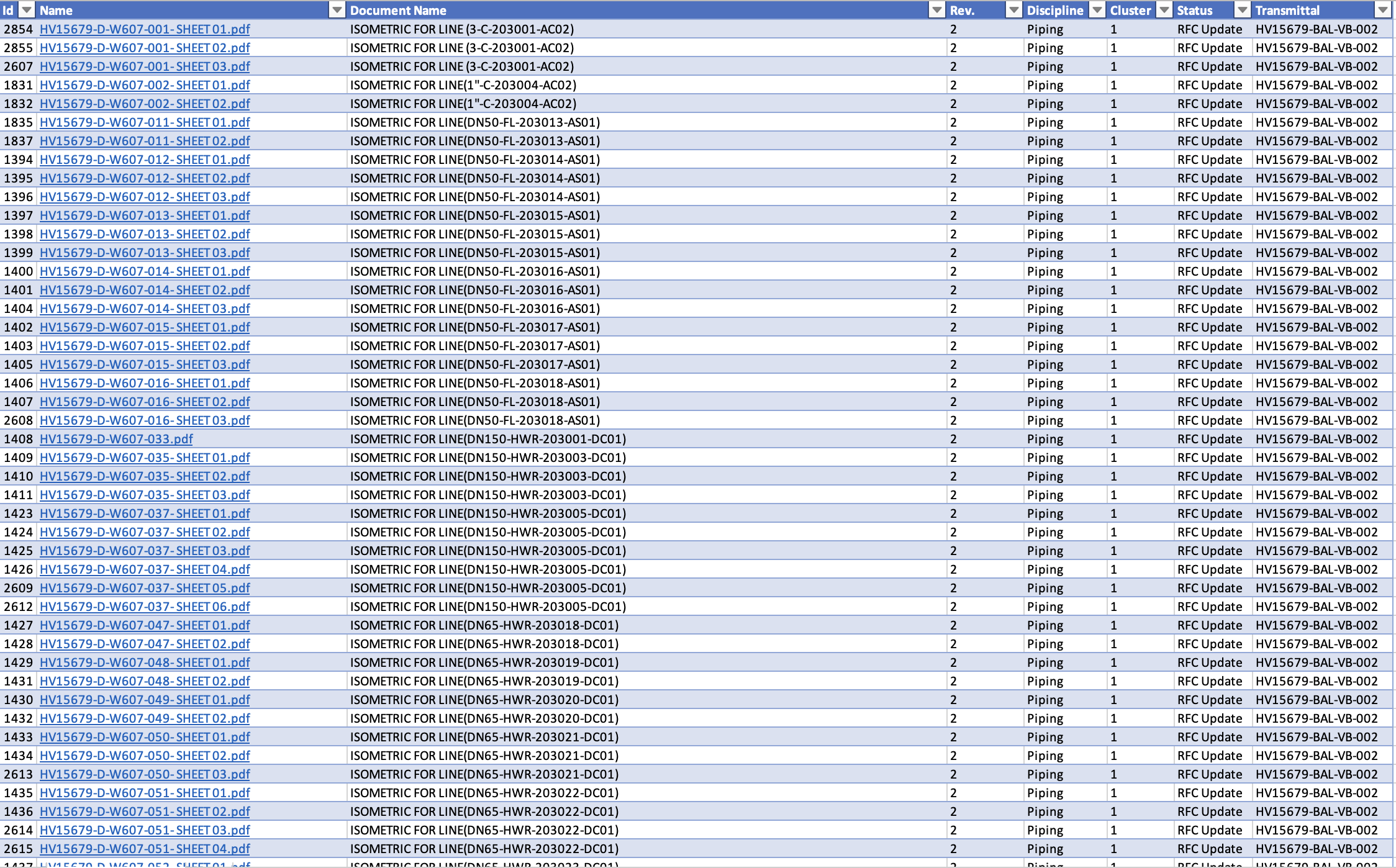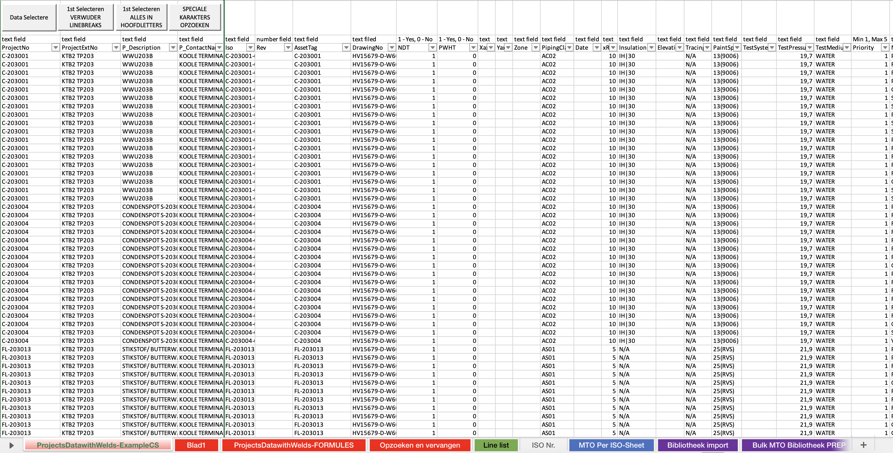 Instructies: Begin met een grondige analyse van de aangeleverde data. Kijk naar de structuur, de types velden, en de manier waarop informatie is georganiseerd. Identificeer de sleutelgegevens die nodig zijn voor import, zoals isometric-referenties, aantallen lassen, materiaalspecificaties, enz.